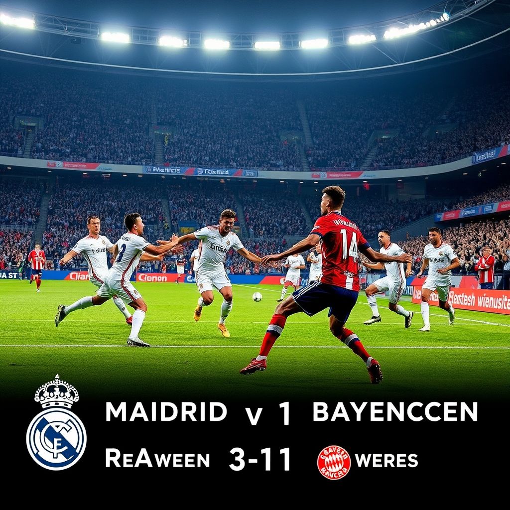 在这个令人热血沸腾的夜晚,欧洲足球的最高舞台——欧冠联赛再次迎来了豪门对决。皇家马德里在主场迎战拜仁慕尼黑,整个比赛充满了对抗与激情,毫不逊色于任何一场经典的欧冠对决。最终,皇马凭借一场精彩绝伦的表现,以3-1的比分击败了拜仁,拿到了半决赛首回合的胜利。